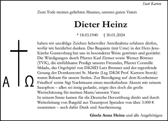 Anzeige Dieter Heger