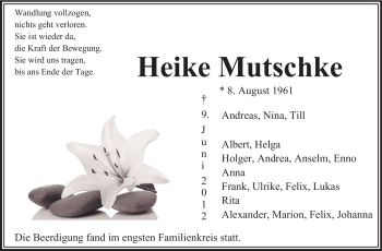 veröffentlicht am 14.12.2016 in Trauerportal Echo Online