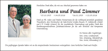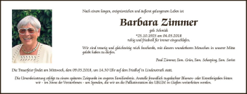 Anzeige Barbara Zimmer geb. Schmidt